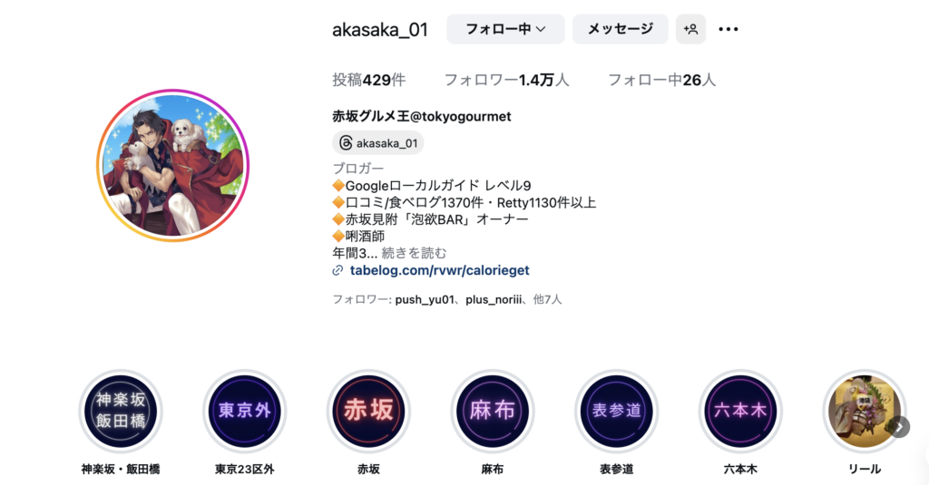 日本でも有数のグルメ街である「赤坂」という地名を入れ、「赤坂グルメ王」という大層な名前を付けている点はさすがのハートの強さとしか言いようがありませんが、本人曰く「赤坂にいるしとりあえず適当に名前つけたらフォロワーが増えたのでそのままやっている」そうです!