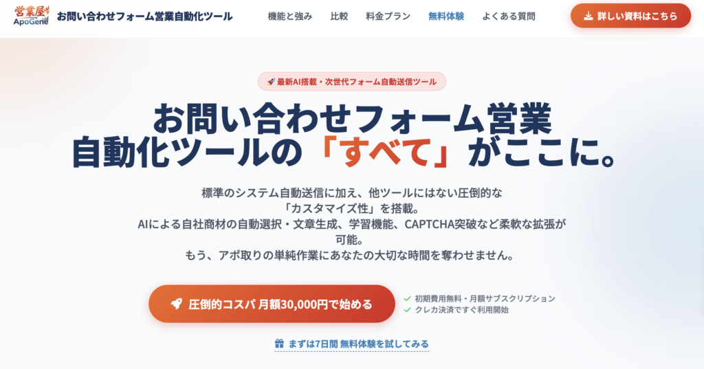 「AIを使った自動営業」とか「AIに全てお任せ!」のような謳い文句でサービスを提供しているケースが多いですね。